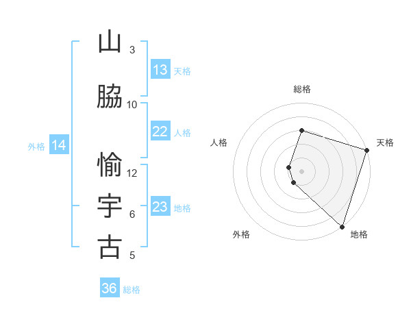 山脇 愉宇古さんを姓名の画数から五運を鑑定