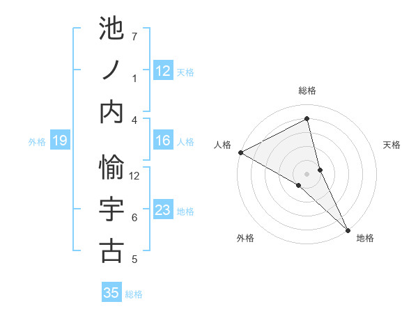 池ノ内 愉宇古さんの総格は35画の4点!