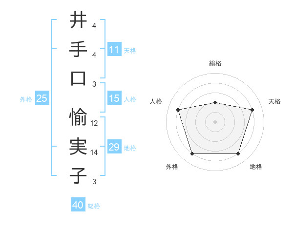 井手口 愉実子さんの総格は40画の2点!