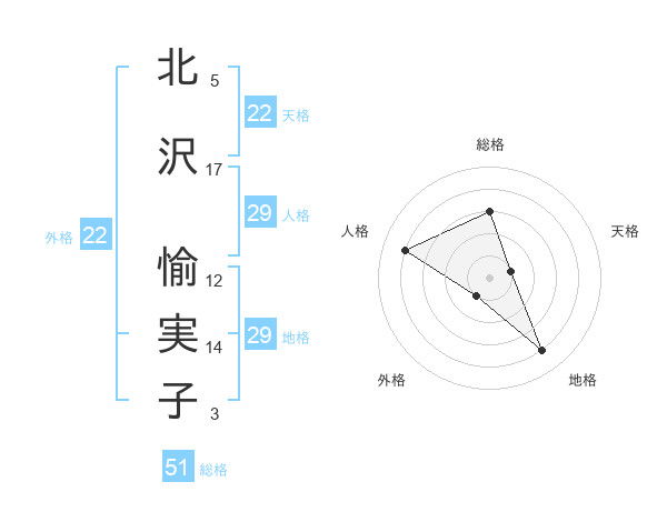 北沢 愉実子さんを姓名の画数から五運を鑑定