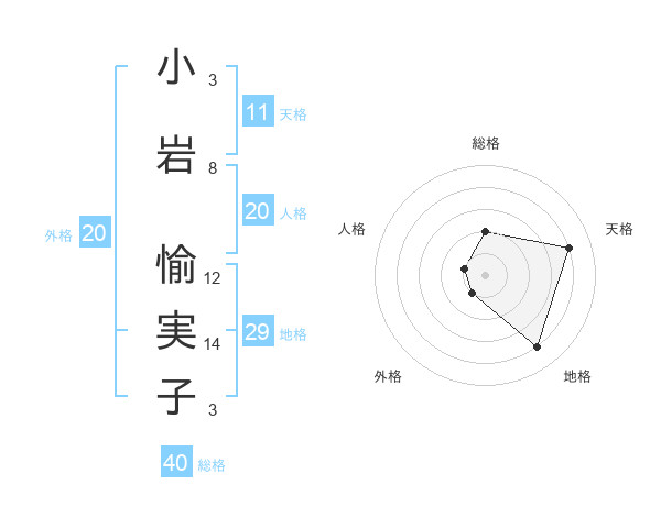 小岩 愉実子さんの天格は11画の4点!