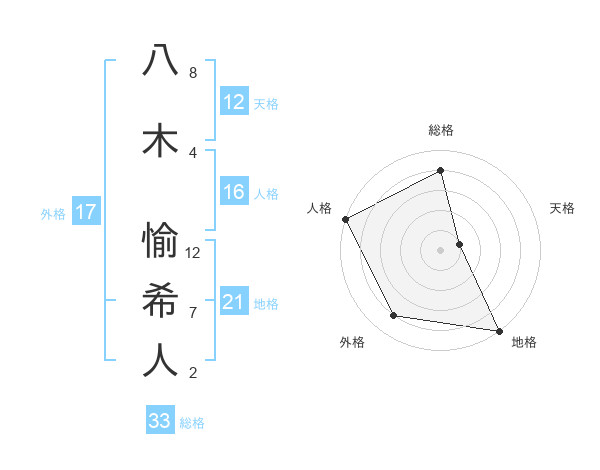 八木 愉希人さんの総格は33画の4点!