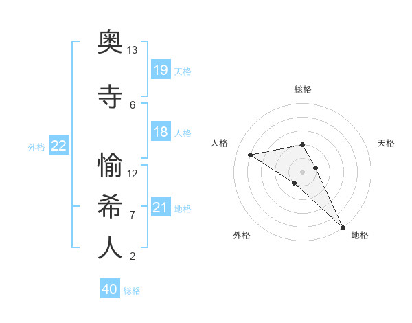 奥寺 愉希人さんの外格は22画の1点!