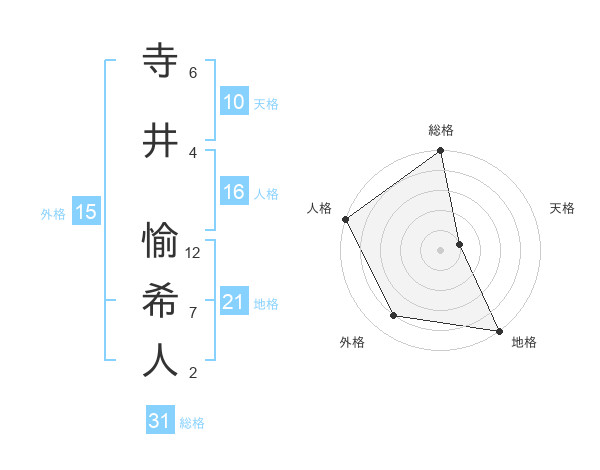 寺井 愉希人さんの総格は31画の5点!