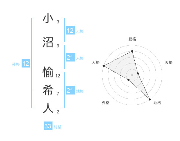小沼 愉希人さんを姓名の画数から五運を鑑定