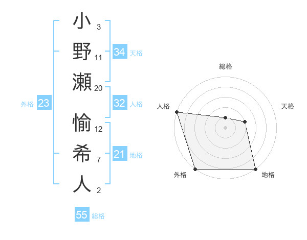 小野瀬 愉希人さんを姓名の画数から五運を鑑定
