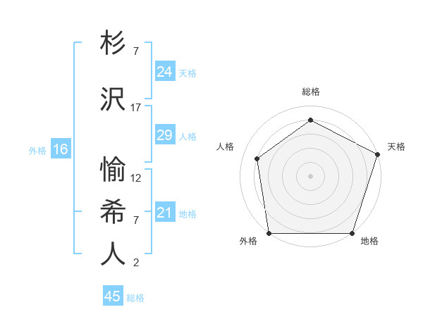 杉沢 愉希人さんの天格は24画の5点!