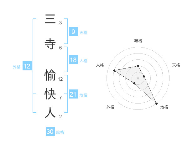 三寺 愉快人さんを姓名の画数から五運を鑑定