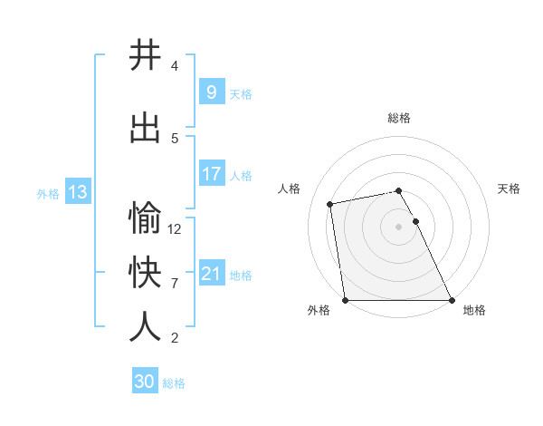 井出 愉快人さんの外格は13画の5点!