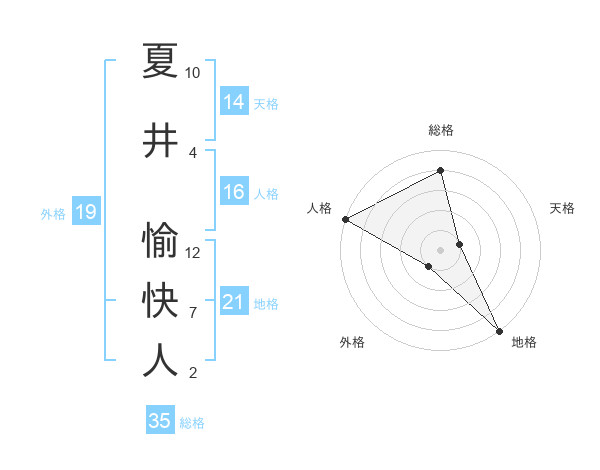 夏井 愉快人さんの総格は35画の4点!
