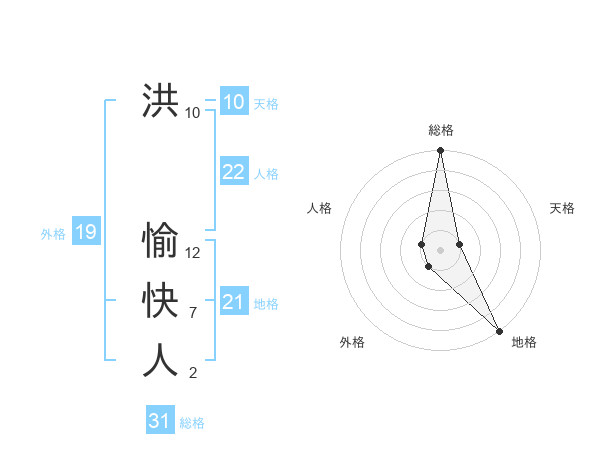洪 愉快人さんを姓名の画数から五運を鑑定