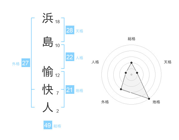 浜島 愉快人さんを姓名の画数から五運を鑑定