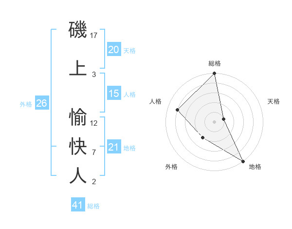磯上 愉快人さんを姓名の画数から五運を鑑定
