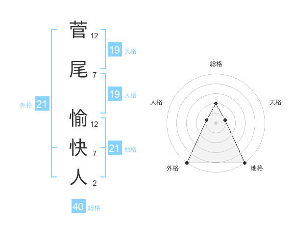 菅尾 愉快人さんを姓名の画数から五運を鑑定