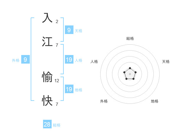 入江 愉快さんの総格は28画の1点!