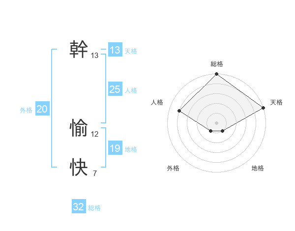 幹 愉快さんの天格は13画の5点!