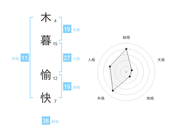 木暮 愉快さんの総格は38画の4点!