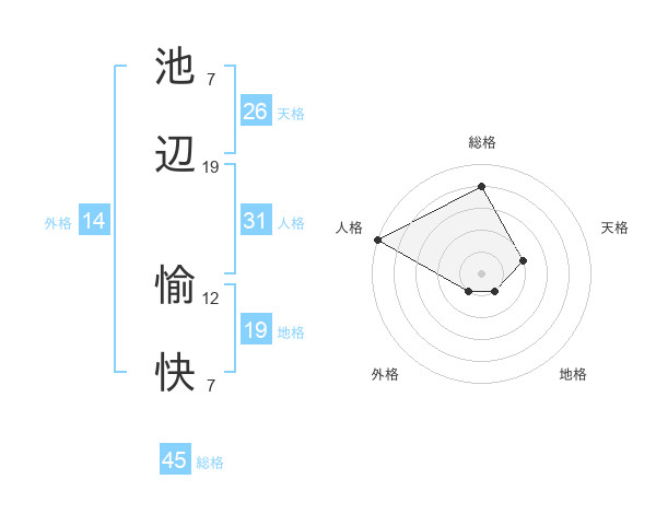 池辺 愉快さんの総格は45画の4点!