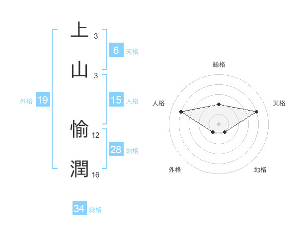 上山 愉潤さんを姓名の画数から五運を鑑定