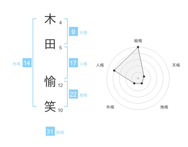 木田 愉笑さんを姓名の画数から五運を鑑定