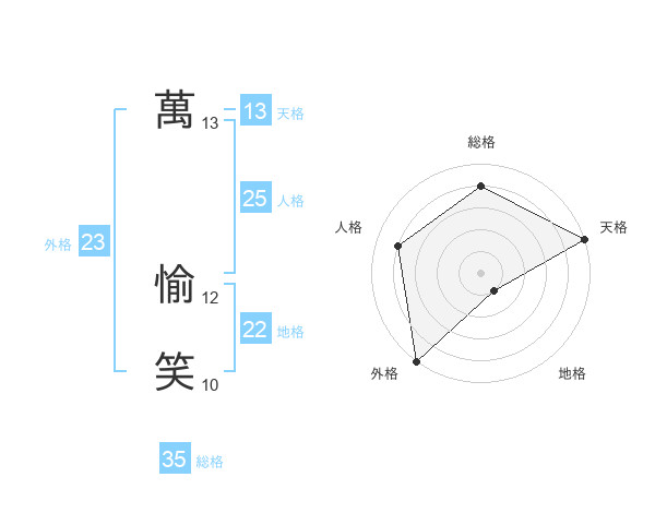 萬 愉笑さんの総格は35画の4点!