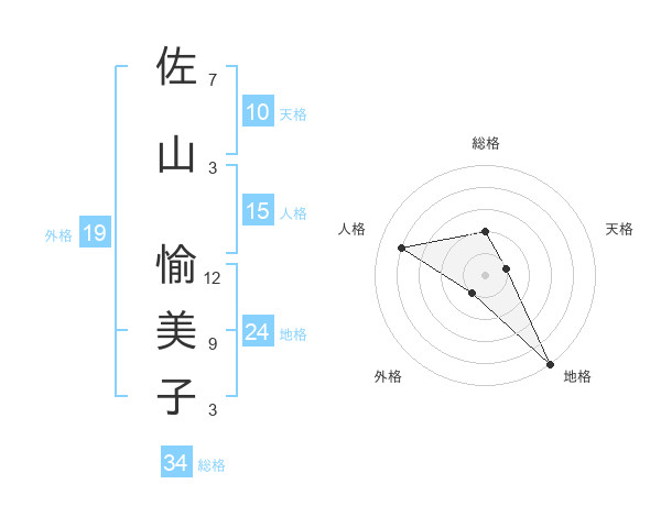 佐山 愉美子さんを姓名の画数から五運を鑑定