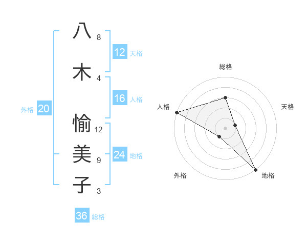 八木 愉美子さんを姓名の画数から五運を鑑定