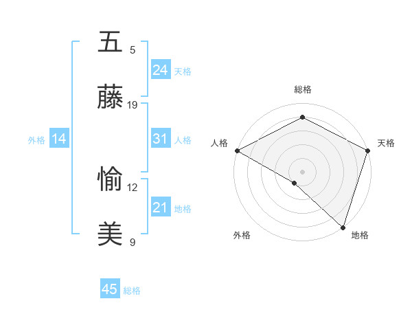 五藤 愉美さんを姓名の画数から五運を鑑定