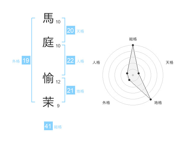 馬庭 愉茉さんの総格は41画の5点!