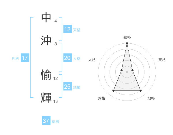 中沖 愉輝さんを姓名の画数から五運を鑑定