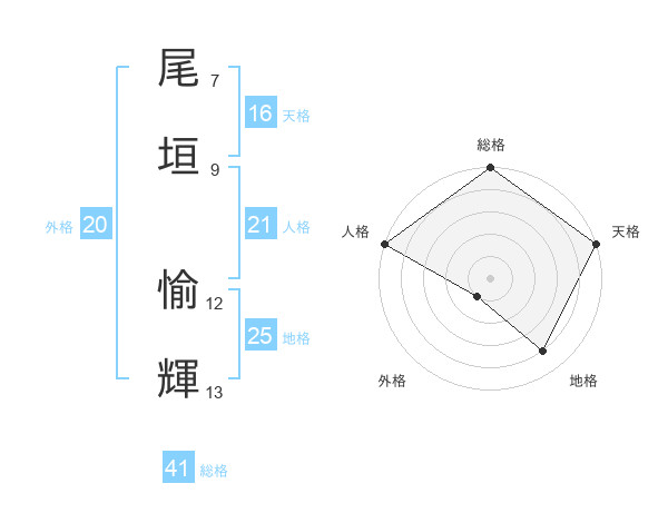 尾垣 愉輝さんを姓名の画数から五運を鑑定