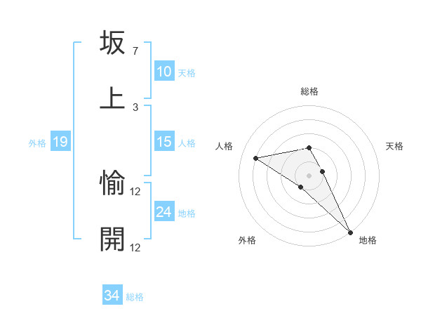 坂上 愉開さんを姓名の画数から五運を鑑定