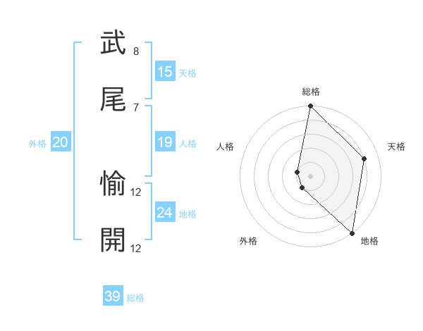 武尾 愉開さんの総格は39画の5点!
