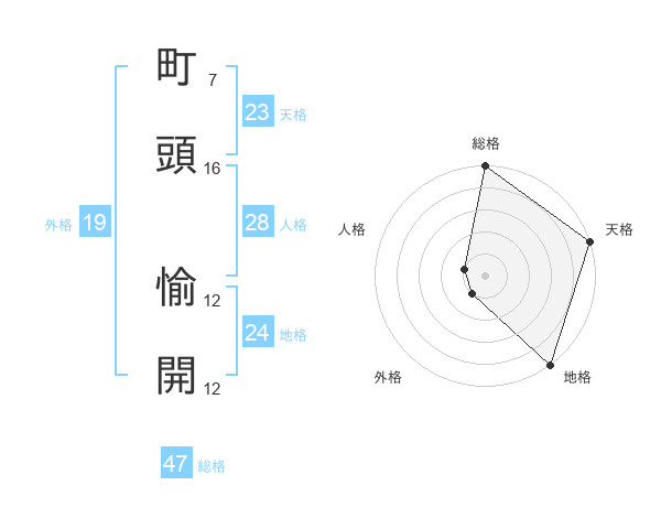 町頭 愉開さんを姓名の画数から五運を鑑定