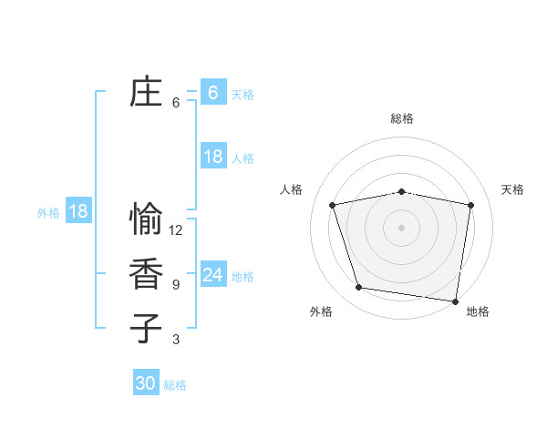 庄 愉香子さんを姓名の画数から五運を鑑定