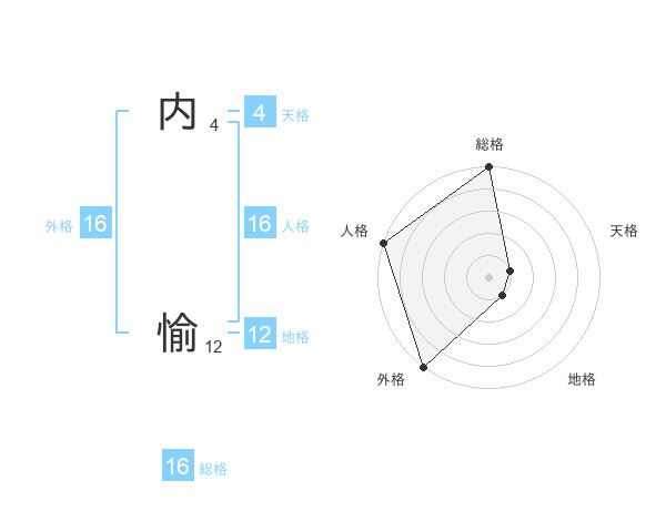 内 愉さんの外格は16画の5点!