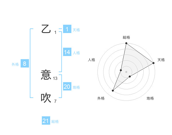 乙 意吹さんの地格は20画の1点!