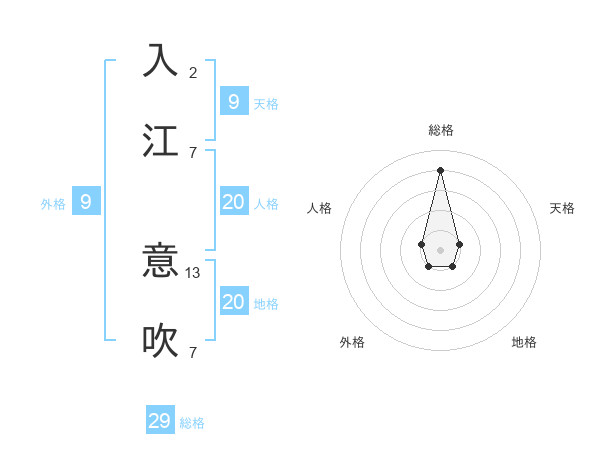 入江 意吹さんの総格は29画の4点!