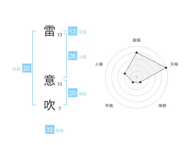 雷 意吹さんの天格は13画の5点!