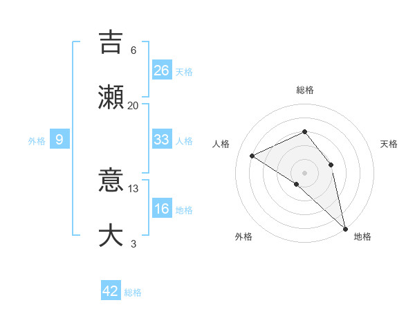 吉瀬 意大さんの総格は42画の3点!