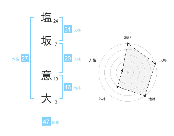 塩坂 意大さんの総格は47画の5点!