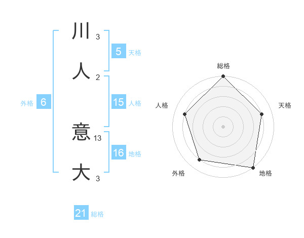 川人 意大さんの総格は21画の5点!