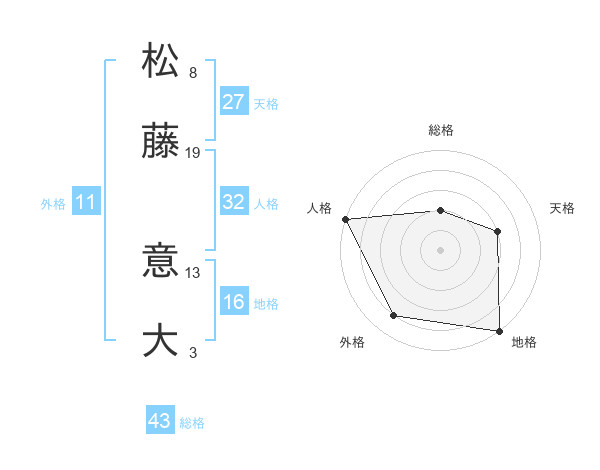 松藤 意大さんの総格は43画の2点!