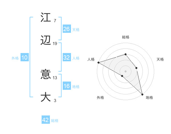 江辺 意大さんの総格は42画の3点!