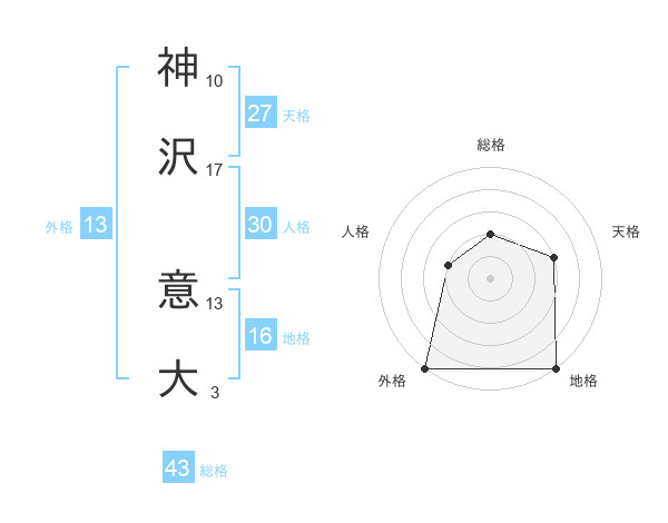 神沢 意大さんの外格は13画の5点!
