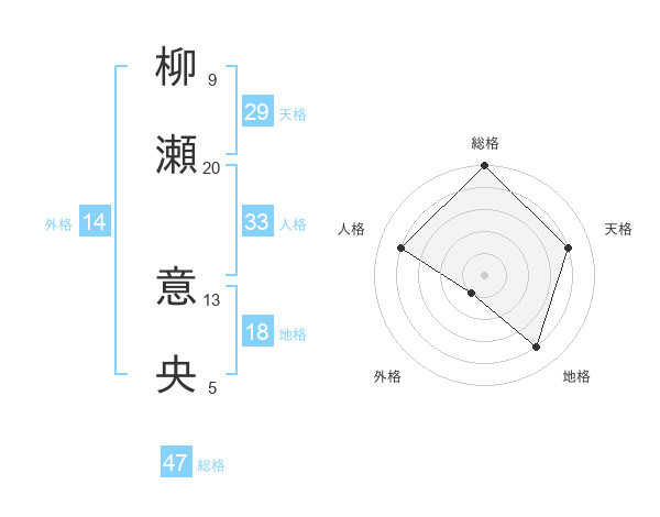 柳瀬 意央さんの総格は47画の5点!