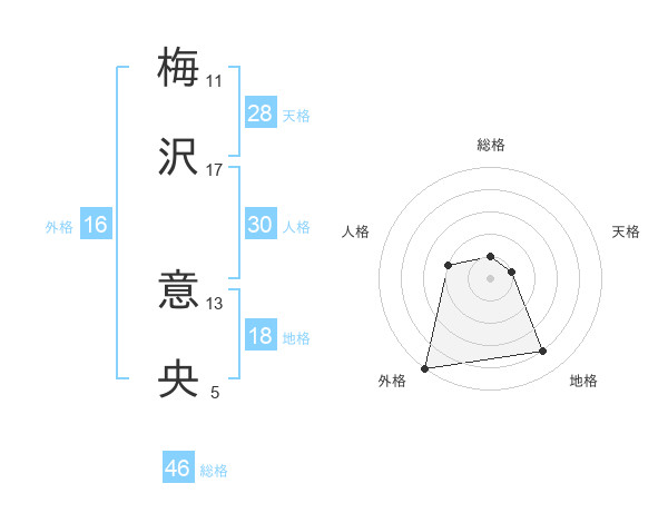 梅沢 意央さんの総格は46画の1点!