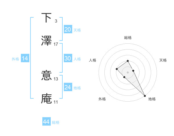 下澤 意庵さんを姓名の画数から五運を鑑定