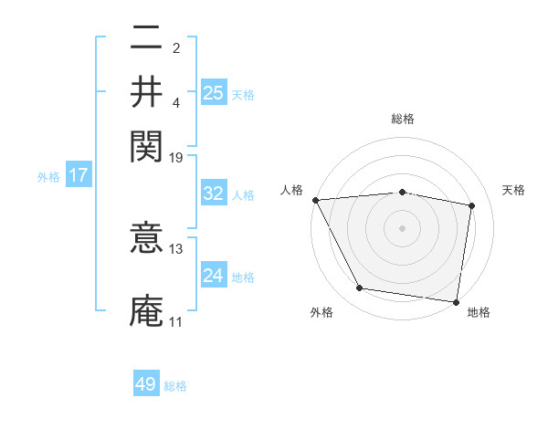 二井関 意庵さんを姓名の画数から五運を鑑定