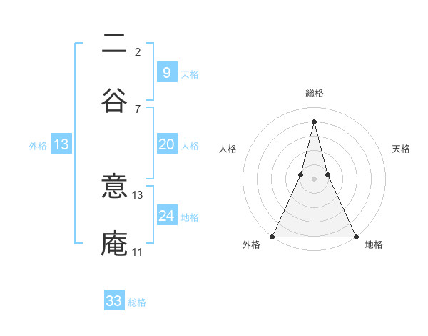 二谷 意庵さんの総格は33画の4点!